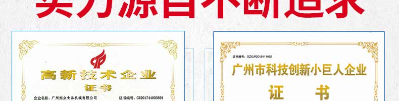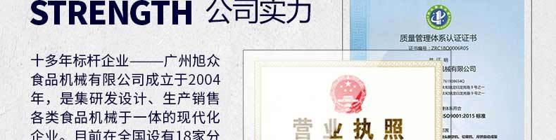 廣州旭眾食品機(jī)械有限公司是一家集科研開發(fā),生產(chǎn)設(shè)計(jì),營銷服務(wù)為一體的現(xiàn)代化生產(chǎn)企業(yè)。現(xiàn)代化生產(chǎn)車間,精湛制造技術(shù),所產(chǎn)機(jī)械歷經(jīng)市場(chǎng)重重考驗(yàn),不斷贏得海內(nèi)外客戶的贊譽(yù)。