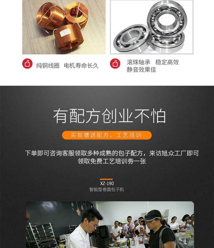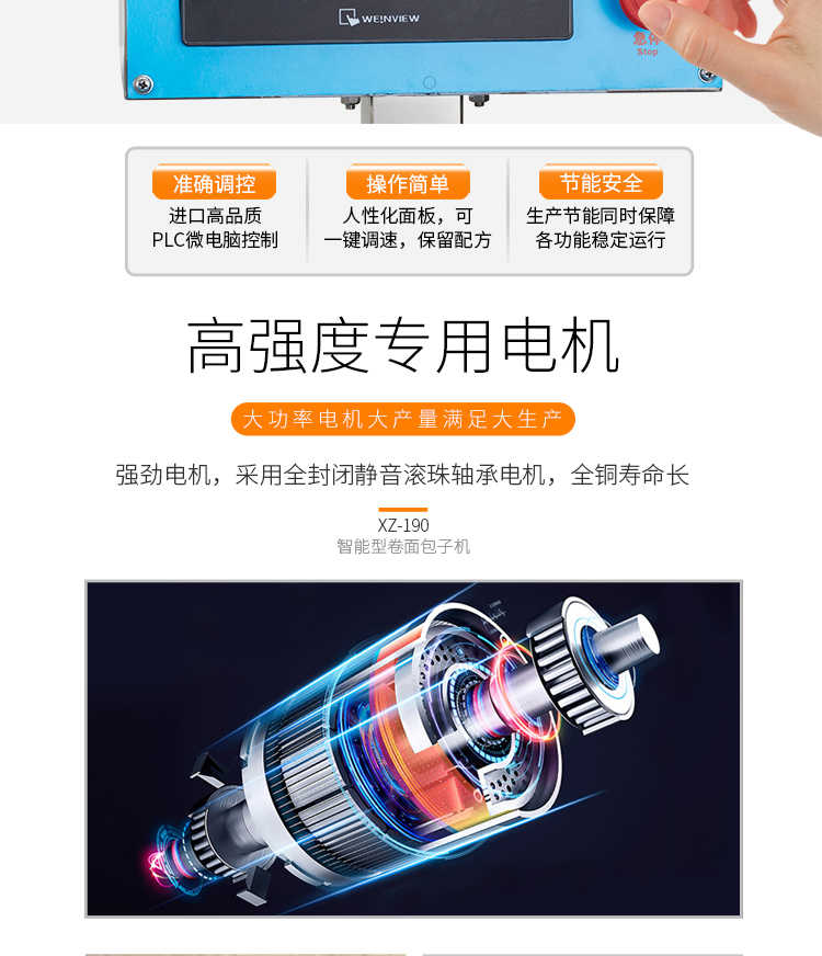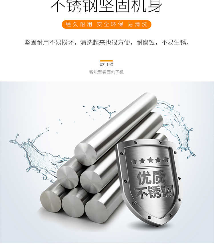 XZ-190智能型卷面式包子機,科技和工藝出乎想象不傷面筋,不斷面筋,薄厚調節自如可直接調節面皮的薄厚,所出產品外形大小統一,遠比手工制作美觀!