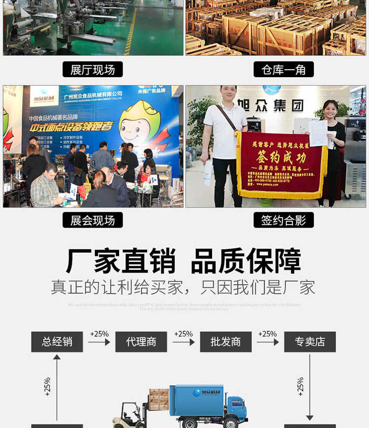 廣州旭眾食品機械有限公司是一家集科研開發,生產設計,營銷服務為一體的現代化生產企業。現代化生產車間,精湛制造技術,所產機械歷經市場重重考驗,不斷贏得海內外客戶的贊譽。