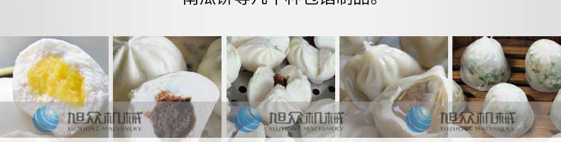 XZ-B812型多功能包子機,它能做的比你想象的多,可生產各種肉包、肉菜包、菜包、小籠包、湯包、生煎包、水晶包、圓饅頭、奶黃包、豆沙包、叉燒包南瓜餅等幾十種包餡制品。