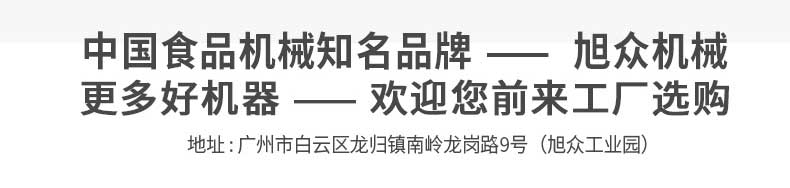 廣州旭眾食品機械有限公司是一家集科研開發,生產設計,營銷服務為一體的現代化生產企業?,F代化生產車間,精湛制造技術,所產機械歷經市場重重考驗,不斷贏得海內外客戶的贊譽。