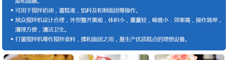 SZM-40、50、60攪拌機系列,可用于攪拌奶油、蛋糕液、餡料及和制面團等操作。打蛋攪拌機等作攪拌食料、揉和面團之用,是生產優質糕點的理想設備,適用于酒店、飯店、學校部門、面包屋以及食品廠家。