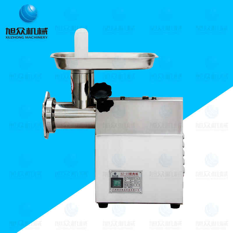 SZ-22 電動絞肉機,電動絞肉機的校孔直徑為6、8mm,本機優(yōu)點具有電耐用、方便快捷、結構緊湊、外形美觀、操作方便、效率高、耗電少、清潔保養(yǎng)容易、安全衛(wèi)生等優(yōu)點。采用全封閉齒輪傳動,結構緊湊,運轉平穩(wěn),工作可靠,且維修方便;絞肉機頭及接觸食品的零部件都采用不銹鋼制造,安全無污染;機殼線條流暢,沒有可污的縫隙及無傷害操作者的銳邊,易于清潔。