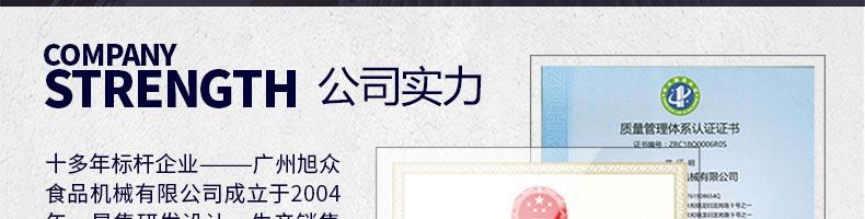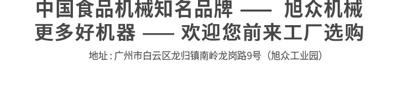 廣州旭眾食品機械有限公司是一家集科研開發,生產設計,營銷服務為一體的現代化生產企業?,F代化生產車間,精湛制造技術,所產機械歷經市場重重考驗,不斷贏得海內外客戶的贊譽。