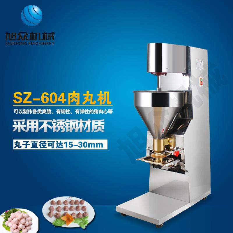 SZ-604肉丸成型機,肉丸成型機采用不銹鋼材質(zhì),丸子直徑可達(dá)15-35mm,可以制作各類爽脆,有韌性、有彈性的豬肉丸、魚丸、牛肉丸、貢丸、雞肉丸等