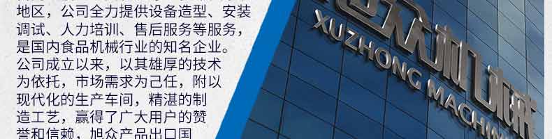廣州旭眾食品機械有限公司是一家集科研開發,生產設計,營銷服務為一體的現代化生產企業。現代化生產車間,精湛制造技術,所產機械歷經市場重重考驗,不斷贏得海內外客戶的贊譽。