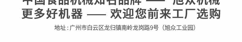 廣州旭眾食品機械有限公司是一家集科研開發,生產設計,營銷服務為一體的現代化生產企業。現代化生產車間,精湛制造技術,所產機械歷經市場重重考驗,不斷贏得海內外客戶的贊譽。