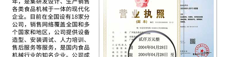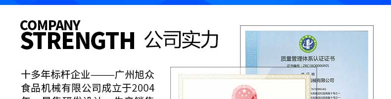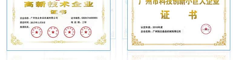 廣州旭眾食品機械有限公司是一家集科研開發(fā),生產設計,營銷服務為一體的現(xiàn)代化生產企業(yè)。現(xiàn)代化生產車間,精湛制造技術,所產機械歷經市場重重考驗,不斷贏得海內外客戶的贊譽。