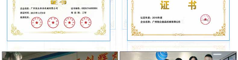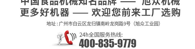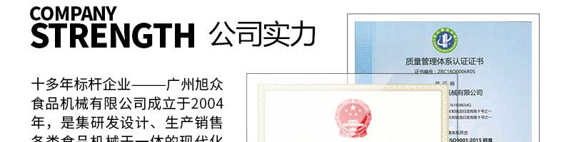 廣州旭眾食品機(jī)械有限公司是一家集科研開發(fā),生產(chǎn)設(shè)計,營銷服務(wù)為一體的現(xiàn)代化生產(chǎn)企業(yè)。現(xiàn)代化生產(chǎn)車間,精湛制造技術(shù),所產(chǎn)機(jī)械歷經(jīng)市場重重考驗(yàn),不斷贏得海內(nèi)外客戶的贊譽(yù)。