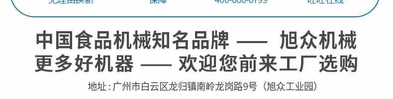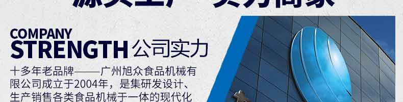 廣州旭眾食品機械有限公司是一家集科研開發,生產設計,營銷服務為一體的現代化生產企業。現代化生產車間,精湛制造技術,所產機械歷經市場重重考驗,不斷贏得海內外客戶的贊譽。